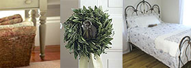 生徒さんの個々の部屋には、美しい羽毛布団やキルトを用意しました。家の中は、全体的にアンティークや木製の家具で装飾してあります。洗面所には、手作りの石けんやタオルを用意してあります。