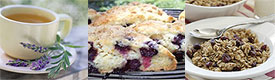 Freshly baked scones & lemon bread, yogurt, ginger granola, herb toast